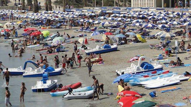 No i konczy sie nasz weekend. Dzisiaj poplynelismy na Tabarke, czyli wyspe, ktora... moglaby byc cudowna. Moglaby, ale nie jest. Ma niemalze wszystkie powody aby byc naprawde fajna, oprocz roslinek. Jest pieknie polozona kilka kilometrow od kontynentu. Wokol jest czysta woda i rafa koralowa. Statki kazdego dnia przywoza tysiace turystow. Jest wiele restauracyjek, zatoczek i plaz. Co wiec jest nie tak? Tlok zbyt wielki. przyplynelismy rano, ale nie pierwszym statkiem, ale tez nie ostatnim. Niestety zalapalismy sie na tylko jeden lezak. Sasiad 5 cm z lewej, sasiadka 10 cm z prawej. A my na jednym lezaku. Drogi (piesze, bo samochodow tu nie ma) piaszczyste, ale nie z morskim piaskiem, ale brudnym, brudzacym wszystko kompletnie piachem. Takaz sama plaza. Rafa mocno, zniszczona, knajpy drogie i na srednim poziomie (100 procent drozej jak na kontynencie). W ogole mozna by zrobic z tego taka perelke, ze szkoda gadac. Az chcialoby sie zadzialac. Ale oprocz marketingu maja malo do zaoferowania. Poszedlem sobie na spacerek po wyspie i chcialem utwalic swa podobizne z opuncjami, ale sie do nich za bardzo przytulilem i ups... powbijaly mi kolce w plecy. Udalo sie na szczescie przezyc. Kolejka na zdjeciu jest do zaokretownia powrotnego. Jeszcze nam pozostala smakowita (mam nadzieje) kolacyjka i pakujemy sie, aby rano wstac o 4.30 na samolot. Generalnie i tak bylo wspaniale. Az zal wracac do zimnej i deszczowej Polski. Ale moze uda nam sie przemycic troche slonka.